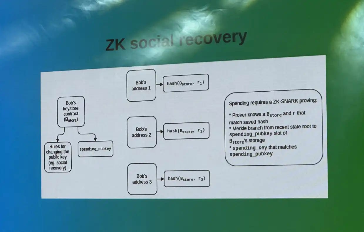 这正是为何,原生于@Starknet的 zk-STARK 技术虽然可处理更复杂的计算问题(避免量子计算攻击等),但 zk-SNARK 却被寄予了更大厚望。 尤其是大家困惑的一些区块链悖论在换上 zk-SNARK 的底层后都可以有效解决,比如:保护隐私潜在的黑客洗钱问题,social recovery 逃不开的中心化机构干涉问题等等。